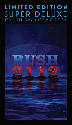"In time for 21/12 celebrations, Universal Music Enterprises (UMe) will release deluxe editions of Rush's landmark album 2112 that will feature 5.1 Surround Sound Mixes, Unreleased Live Tracks and the First Ever Rush Comic Book, available globally starting December 18, 2012. There will be 3 configurations of 2112: DELUXE EDITIONS (CD/DVD and CD/Blu-Ray) and a special SUPER DELUXE EDITION (CD/Blu-Ray/Hardbound book case). The deluxe editions contain a CD/DVD or CD/Blu-Ray material including the remastered 2112 CD with 3 live bonus tracks and a DVD or Blu-ray disc with a 5.1 surround sound audio mix and an interactive digital comic book, a new album cover by original album designer Hugh Syme, liner notes and unpublished photos. The Super Deluxe contains the CD/Blu-Ray and is meticulously assembled in a hardbound bookcase packed with a 40-page comic book representing every song on 2112." - 2112 Deluxe Edition Press Release, Rush.com, November 12, 2012