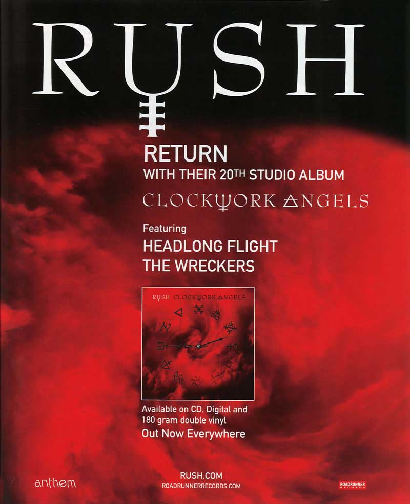 "There is the epic song, 'Clockwork Angels,' which is really taking shape. It's a multi-parted piece, very dynamic. Then there's some stuff that's very melodic and on the softer side, on acoustic, with a strong melody. So there's great diversity there. Honestly, I can't wait until we start really working on these songs. We've sort of got them to the stage where Geddy and I were happy with the arrangements and then Neil kind of comes in and starts working on his drum arrangements, and they go from there. So they're sort of in that pre-drum stage right now, and it's great to see them come to life." - Alex Lifeson, Allentown Morning Call, August 25, 2010