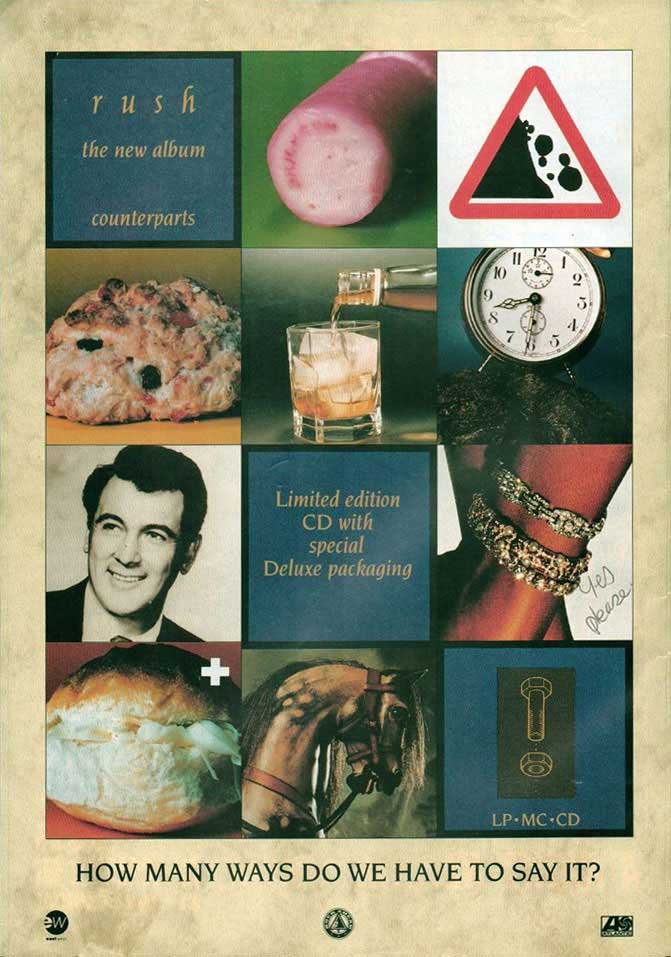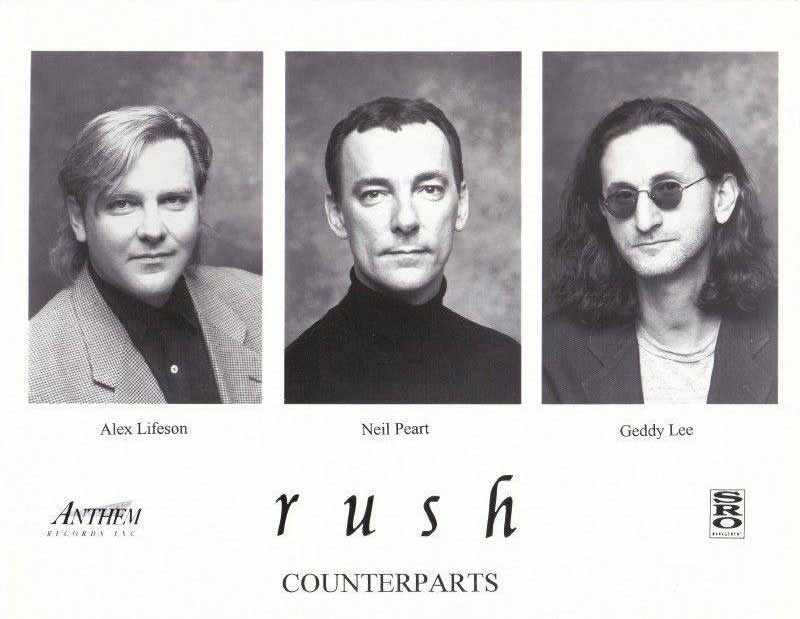 "[When working on Roll The Bones] Alex would be working the console and we were doing the demos...he'd be looking for something you know, 'Where's my thing?'"...[When working on Counterparts] "We all grew goatees, or at least interesting facial hair, during the recording and writing process...When you have a goatee of hair, you tend to play with it all the time, so we were constantly saying to each other, 'Leave That Thing Alone!'". - Neil Peart, AP News, January 20, 1994