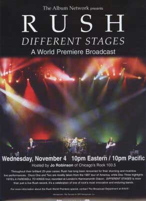 "The last one [Different Stages] was the best one. It has the best packaging of the stuff from Hammersmith Odeon. We included that so you get 20 years. You can see the rawness of those days and the maturity and confidence of the more recent days. We are proud of it, but it is an enormous headache to do a live record." - Alex Lifeson, JAM! Showbiz, May 7, 2002