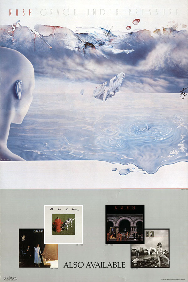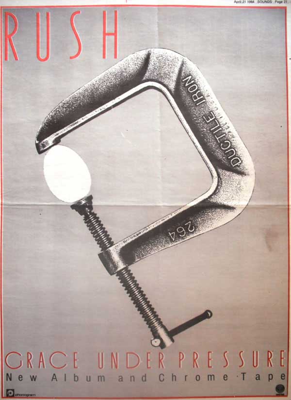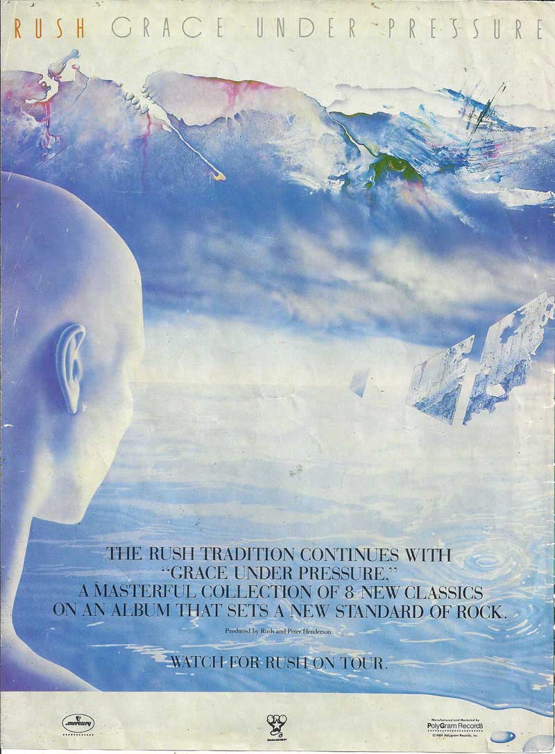 "There was an Alex Colville painting that we were thinking of possibly using for the album cover, but it was a little too powerful I think, and the idea for the title Grace Under Pressure, really fit that picture well. Although we decided not to use that picture we decided to stick with that title." - Alex Lifeson, Song Hits, November 1984