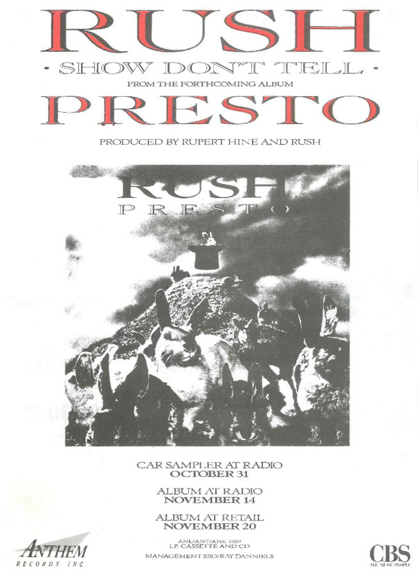 "Some records I'm not terribly happy with the sound of: 'Presto' is a disappointing-sounding record. From a sonic point of view, it could sound a bit bigger." - Geddy Lee, Classic Rock, October 2004
