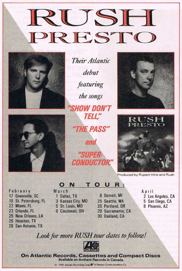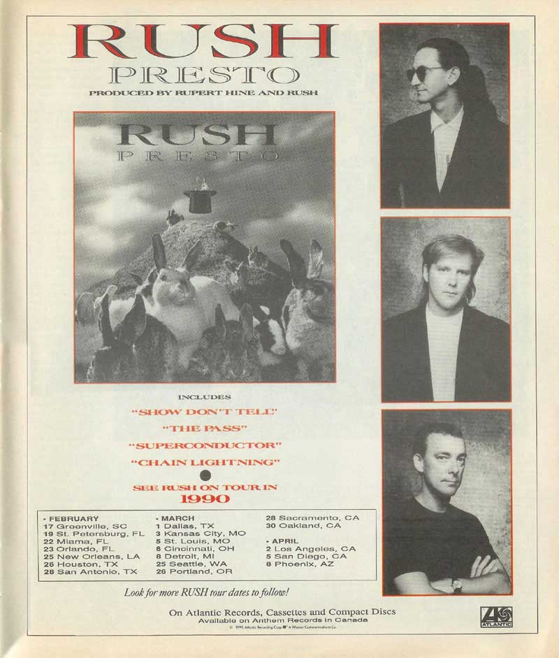 "Our contract with Phonogram expired and we decided it was time for a change. We were being thrown into the same category as our labelmates Bon Jovi and Def Leppard in terms of the way we were being marketed, yet they are mega-million selling bands in America, and inevitably Phonogram were concentrating on them. We needed a label that had the enthusiasm to push us; Atlantic have that quality." - Alex Lifeson, RAW No. 33, November 29, 1989