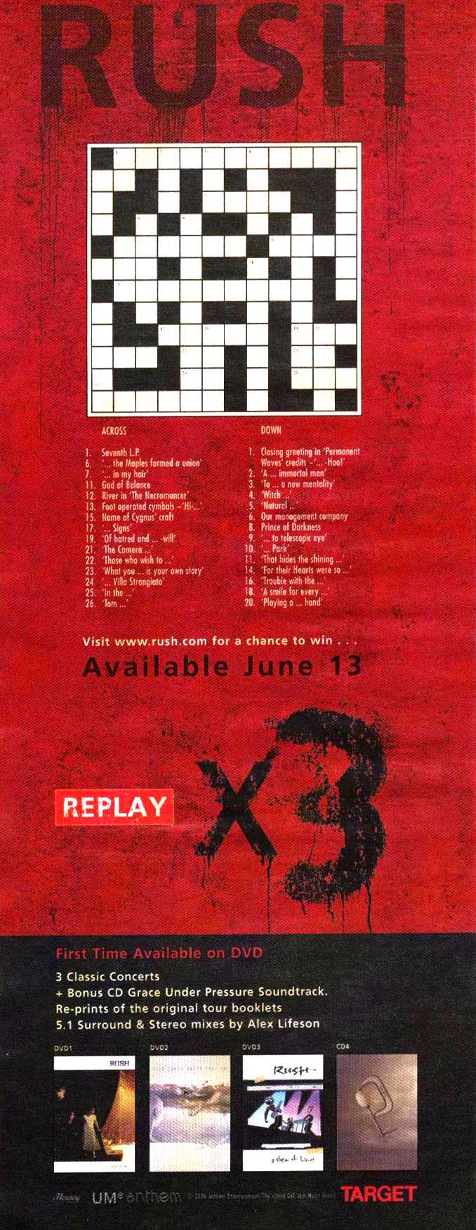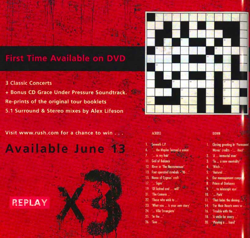 5.1 and stereo mix by Mike Fraser and Alex Lifeson - Warehouse Studios, Vancouver