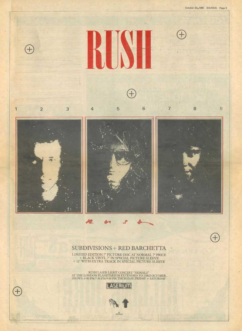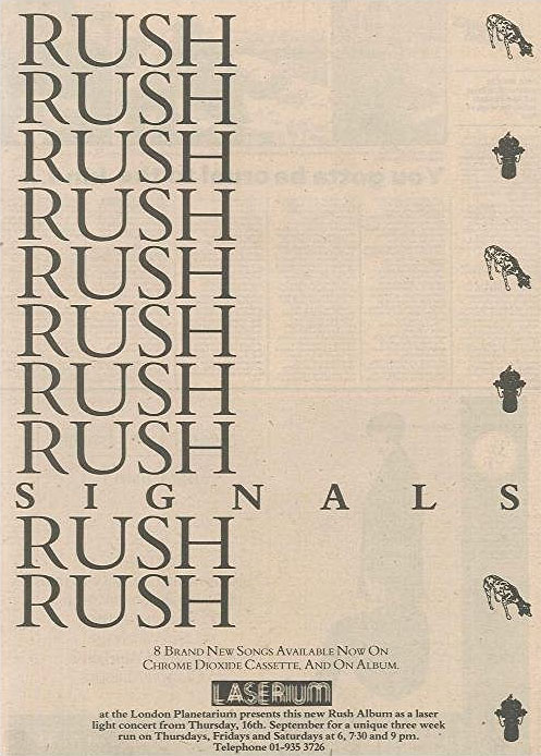 [Signals has a cyclical framework. It opens in suburbia, on the edge of "the far unlit unknown," contemplates escape in The Analog Kid, explores universal human imponderables - the essence of our humanity, sex, religion, old age - and ends with actual escape to the stars in Countdown...] "Ah, you noticed that. We were hoping no one would. It's so unfashionable these days to construct grand concepts. We're being closed mouthed about it. Some people, and I don't expect there'll be many, will be insightful enough to catch it. Although it's interesting that you, the first writer I've talked to about the album, did pick up on it". - Neil Peart with Greg Quill, Music Express, September/October 1982