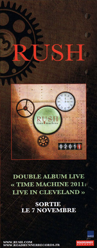 "As a tribute to the US city that first played their music, Rush confirms that the Cleveland performance of their Time Machine show on April 15th at the Quicken Loans Arena will be filmed for full-length release. Cleveland is remarkable for being one of the very first US cities where the band performed, in addition to being the first city to provide American airplay. This will be a must-see event for Rush fans in Cleveland – and for everyone able to make the road trip as it is will also mark the first live full-length filming on US soil." - Rush.com, December 5, 2010
