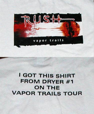As the band left the stage before the encore, I leaned toward John and reminded him of the dryer shirts. I really didn't expect to get one, but being 5th row, if a shirt was near, you had better stay outta my way! Alex came out first, drew one shirt from each dryer, threw one into the center section but too far to the left of us, and the other two shirts he threw into the section in front of his stage area. As Al through his shirts, Ged was taking his three shirts out of the dryers. He walked towards the front of the stage, and threw the first shirt directly at me! The shirt was easily 8 to 9 feet up in the air, but at my height of 6'5", no one else in my area had a chance! I leapt, snagged it out of the air, and cradled it like a running back breaking a tackle. Immediately after the band left the stage and the house lights came up, someone approached me and offered me $125 for the shirt. I laughed and said it's not for sale, to which he replied "$150?!?! That's all I got!". I told him they were on ebay for $500 (not that I would have sold it!). Needless to say, it was the perfect end to an already perfect day.