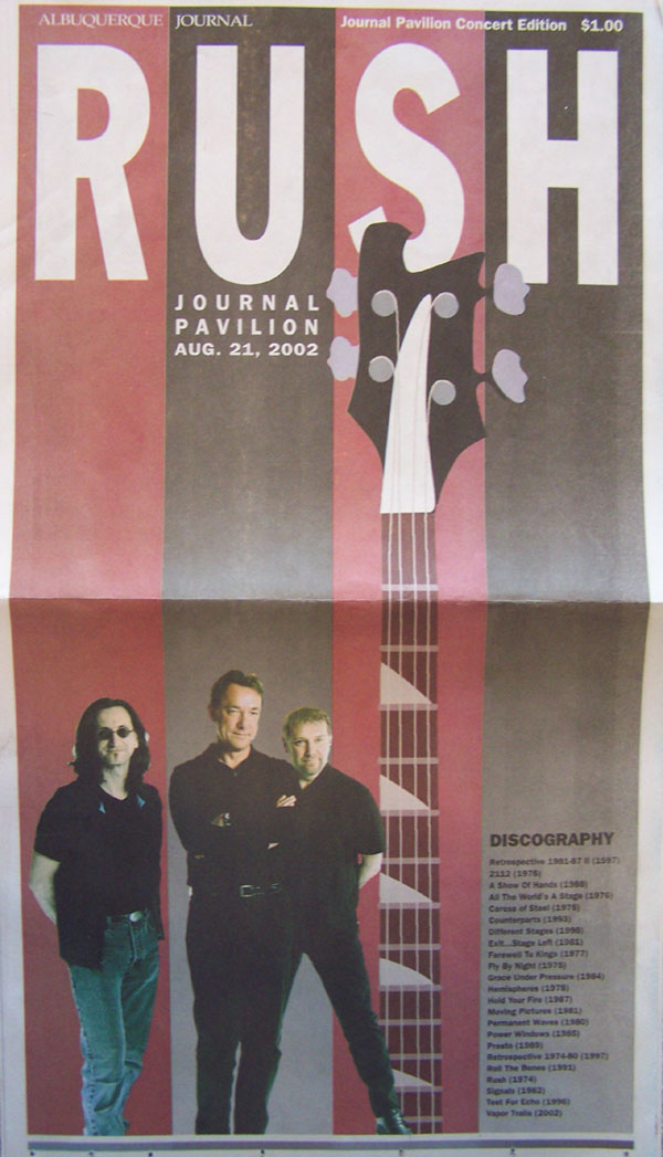 Decked out in our Rush finest, my friend John and I left Denver at 9 am enroute to Albuquerque. It took just over five hours to travel the 420 miles south, but it did cost me one speeding ticket!