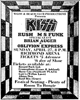 Rush wishing Ace Frehley a Happy Birthday, April 27, 1975: