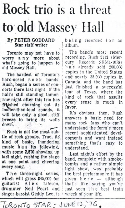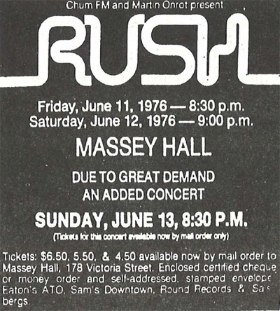 Massey Hall, Toronto, Ontario, June 11-12-13, 1976
