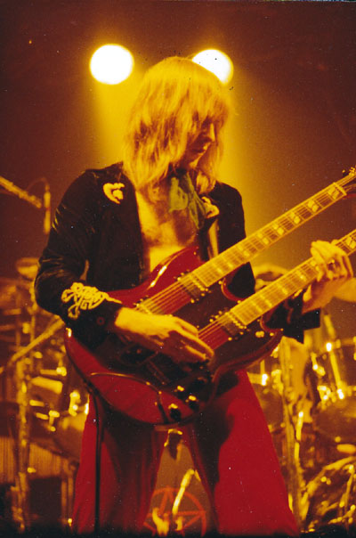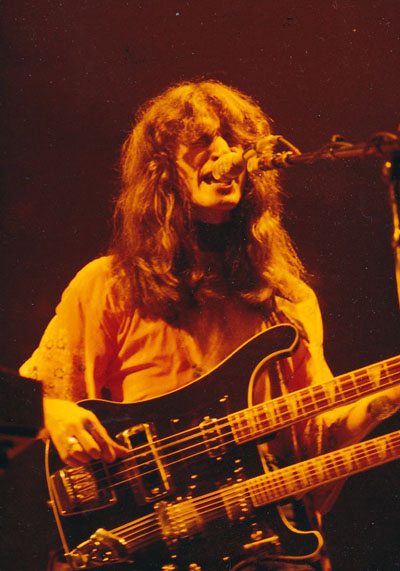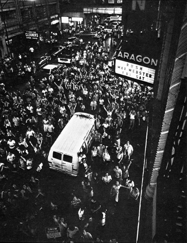 Rush performing "Anthem" at the Aragon, May 20, 1977, photo provided by Jim Bossier. Photos of Rush at the Aragon, May 21, 1977, photos by Scot Stadalsky, provided by Jim Bossier.