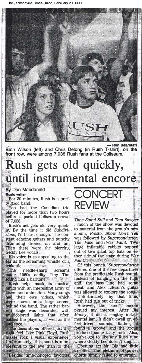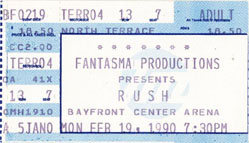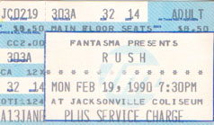 Jacksonville ticket provided by Gary Stafford. Likely a case of juggling of dates early in the tour, tickets were issued for February 19th for both Memorial Coliseum in Jacksonville and the Bayfront Center in St. Petersburg. The St. Petersburg show in fact took place the following day on February 20th.