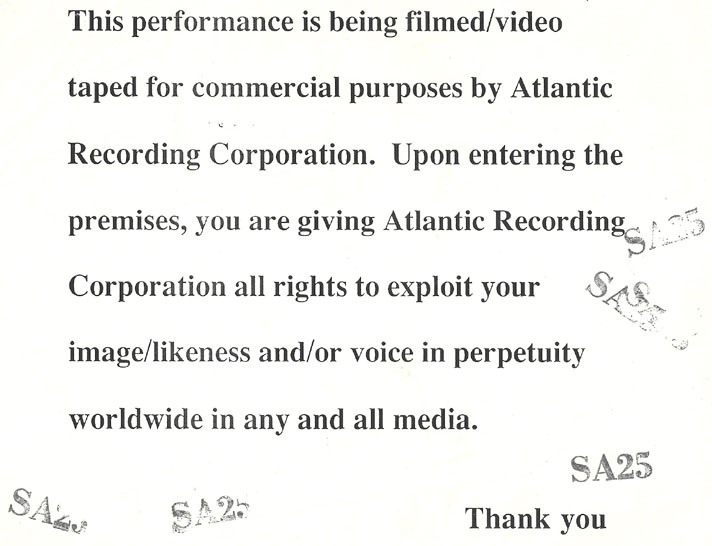 Video announcement handed out as one entered the venue on June 4 (the second night only), provided by Steve Taylor who reported that the concert was filmed.
