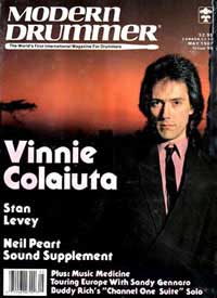 We were to start working on new material in the fall, and I really wanted to update my electronic outfit as well. I had been watching the progress of digital sampling units for a couple of years, and felt that the time was right to explore that. I spoke with the band's "technological mentor," Jim Burgess, told him what I was after, and he recommended that Akai unit, with a Yamaha MIDI controller. I decided to stay with the latest Simmons pads, as I like the feel of them.