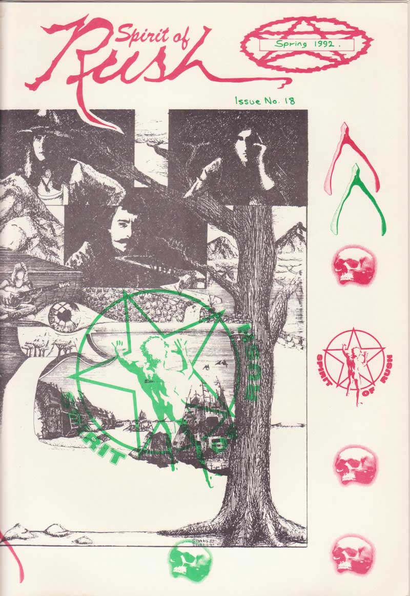Webmaster Note: Andrew is interviewed by The Spirit Of Rush's Mick Burnett, Neil Elliott, and Monica Zimmerman in his room at The Four Seasons Olympic Hotel in Seattle, Washington, on March 26, 1990. The interview was not published until over a year later: part 1 appeared in SOR #17, Winter 1991/1992 and part 2 appeared in issue #18, Spring 1992. Pictured below are the covers of both issues, as well as the back cover of issue #10, the current issue at the time of the interview: Andrew asked all three band members to sign sign it for Monica.