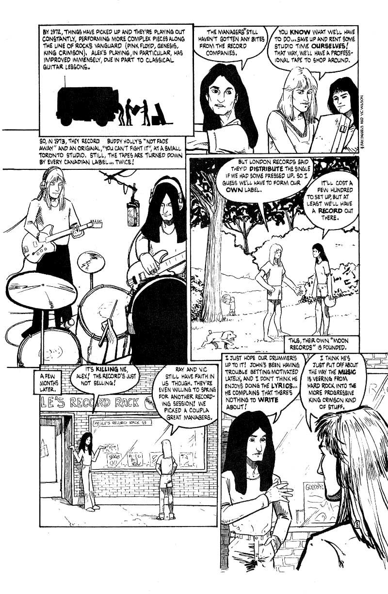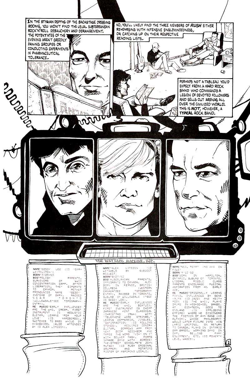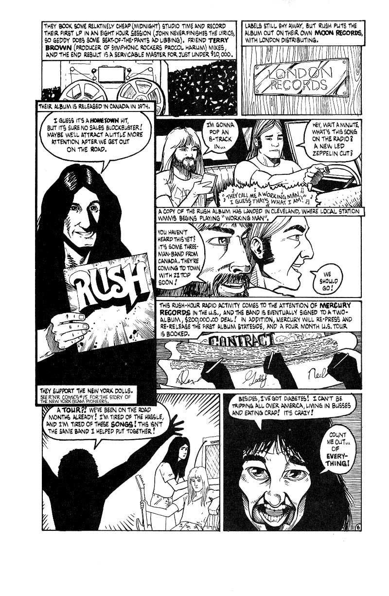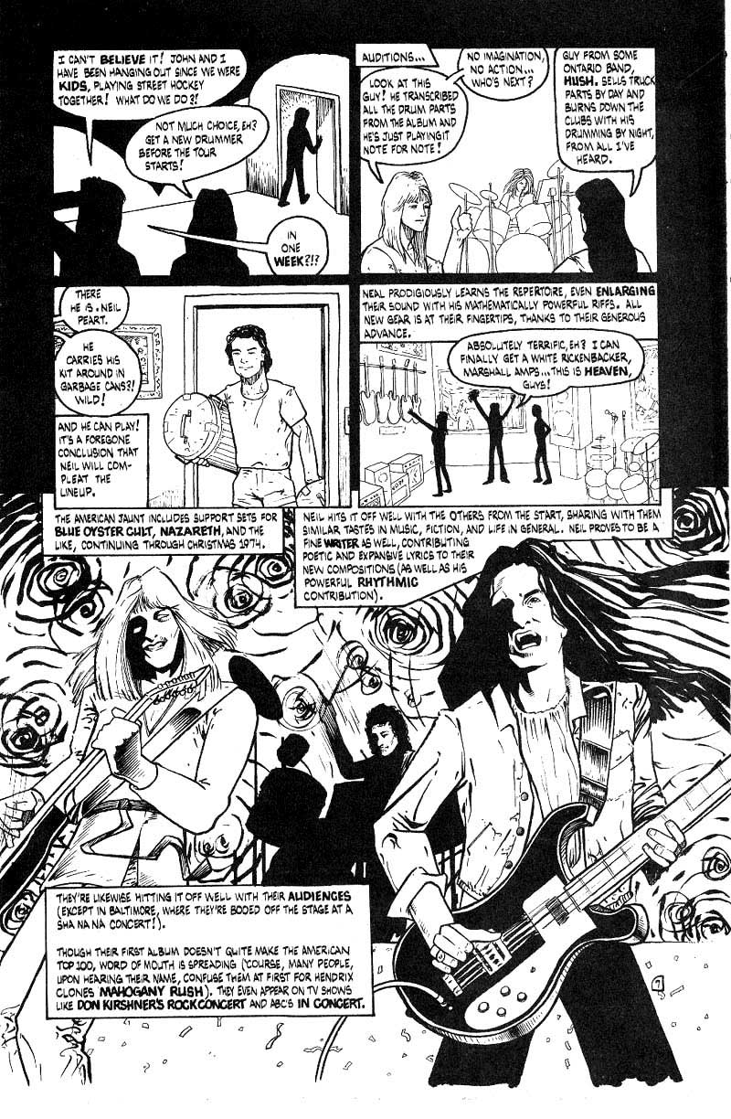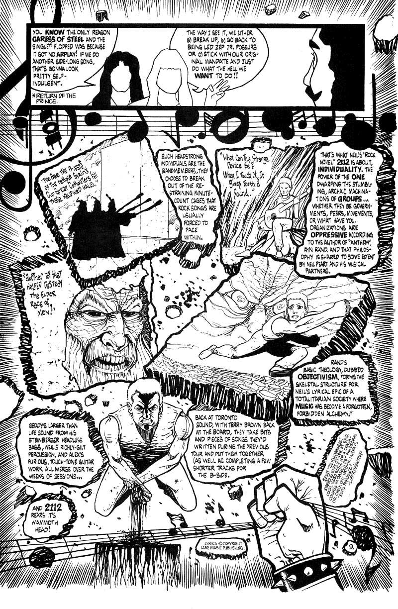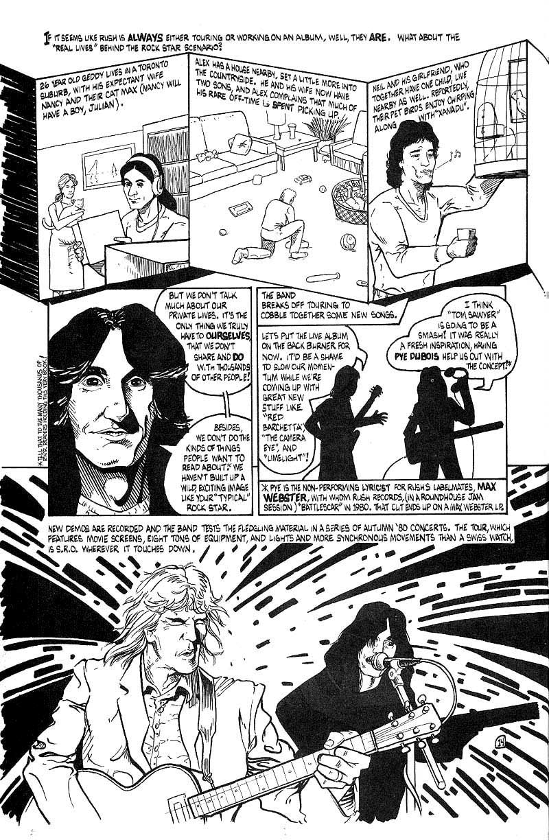 Rock & Roll Comics later included Rush as part of their "Sci-Fi Space Age Rockers" anthology, issue #65, with one page concerning the making of 2112 taken from the below Rush comic.]