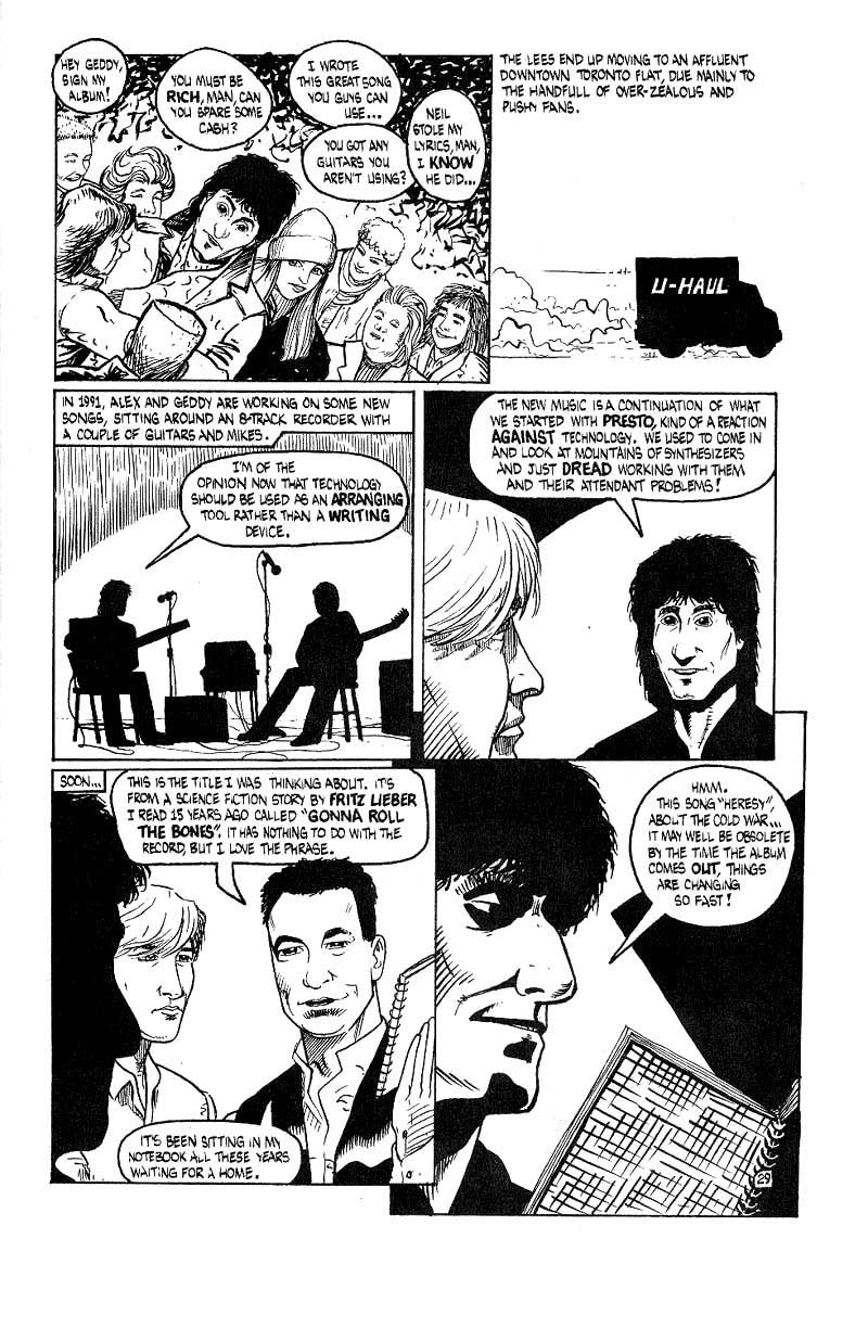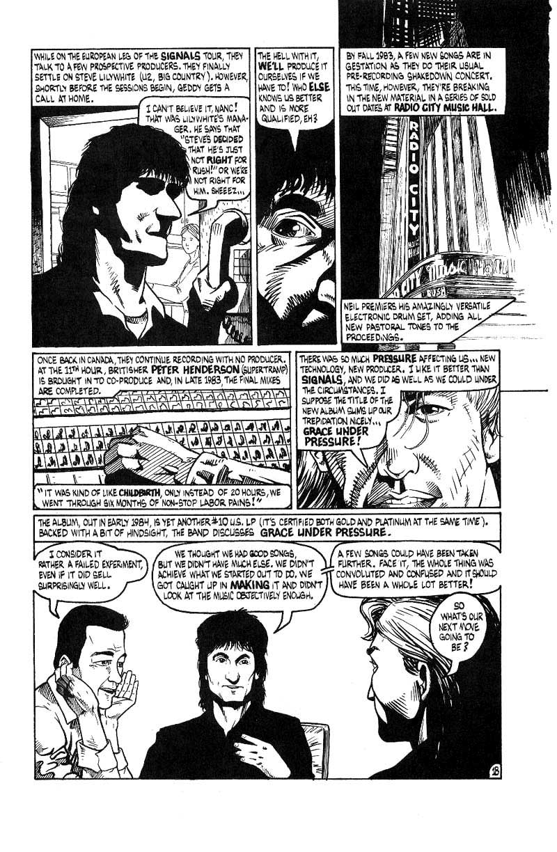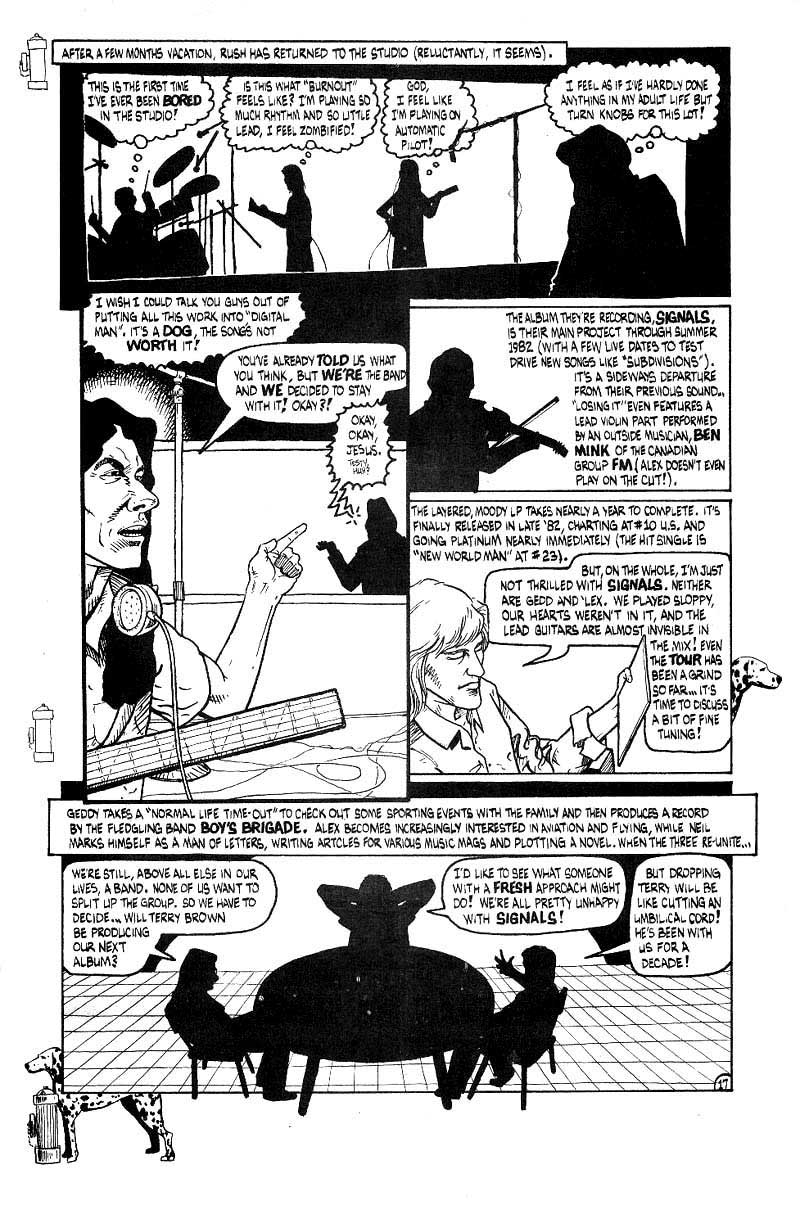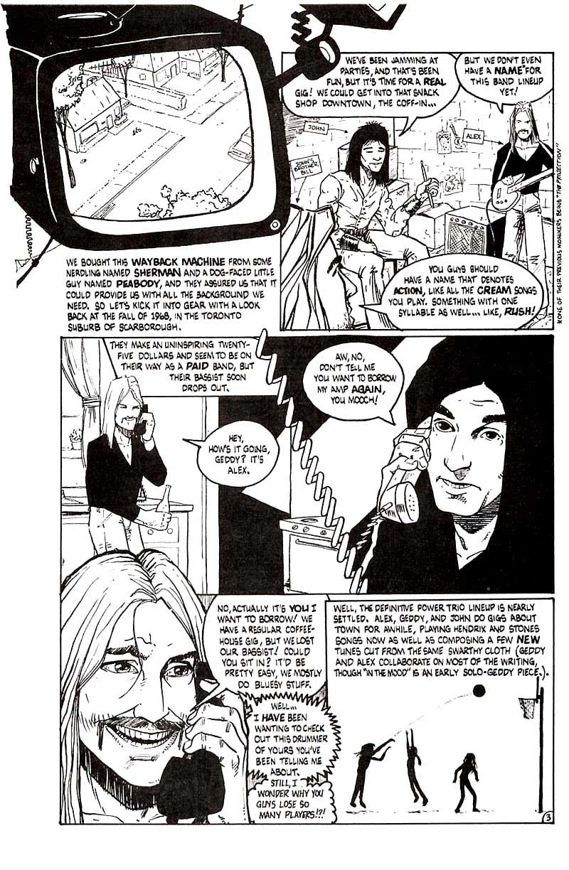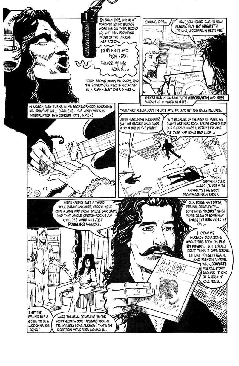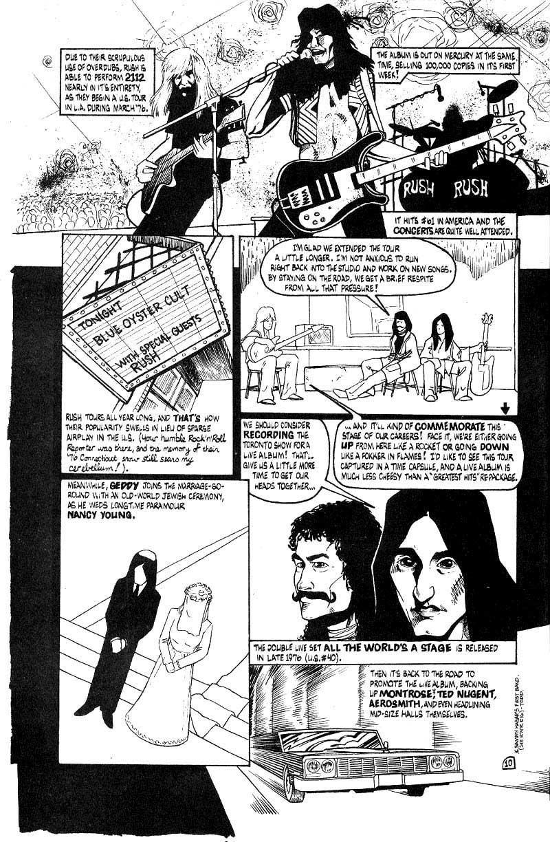 Rock & Roll Comics later included Rush as part of their "Sci-Fi Space Age Rockers" anthology, issue #65, with one page concerning the making of 2112 taken from the below Rush comic.]