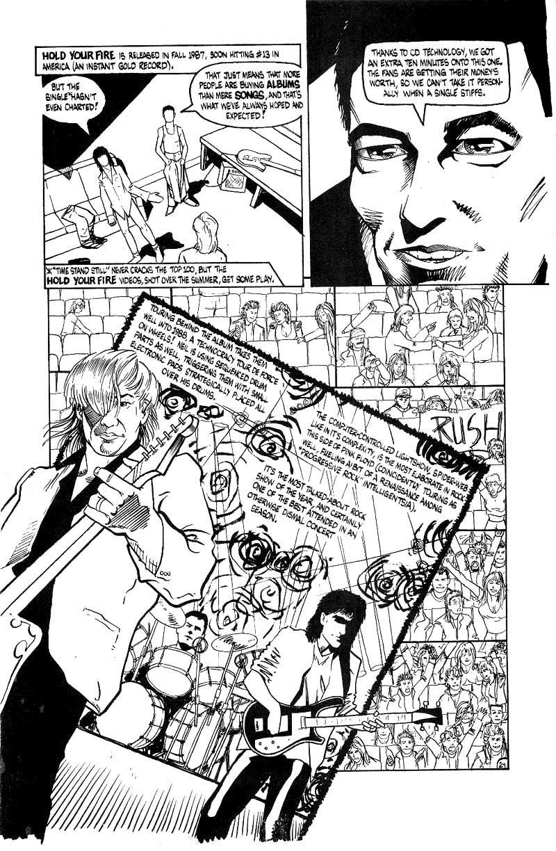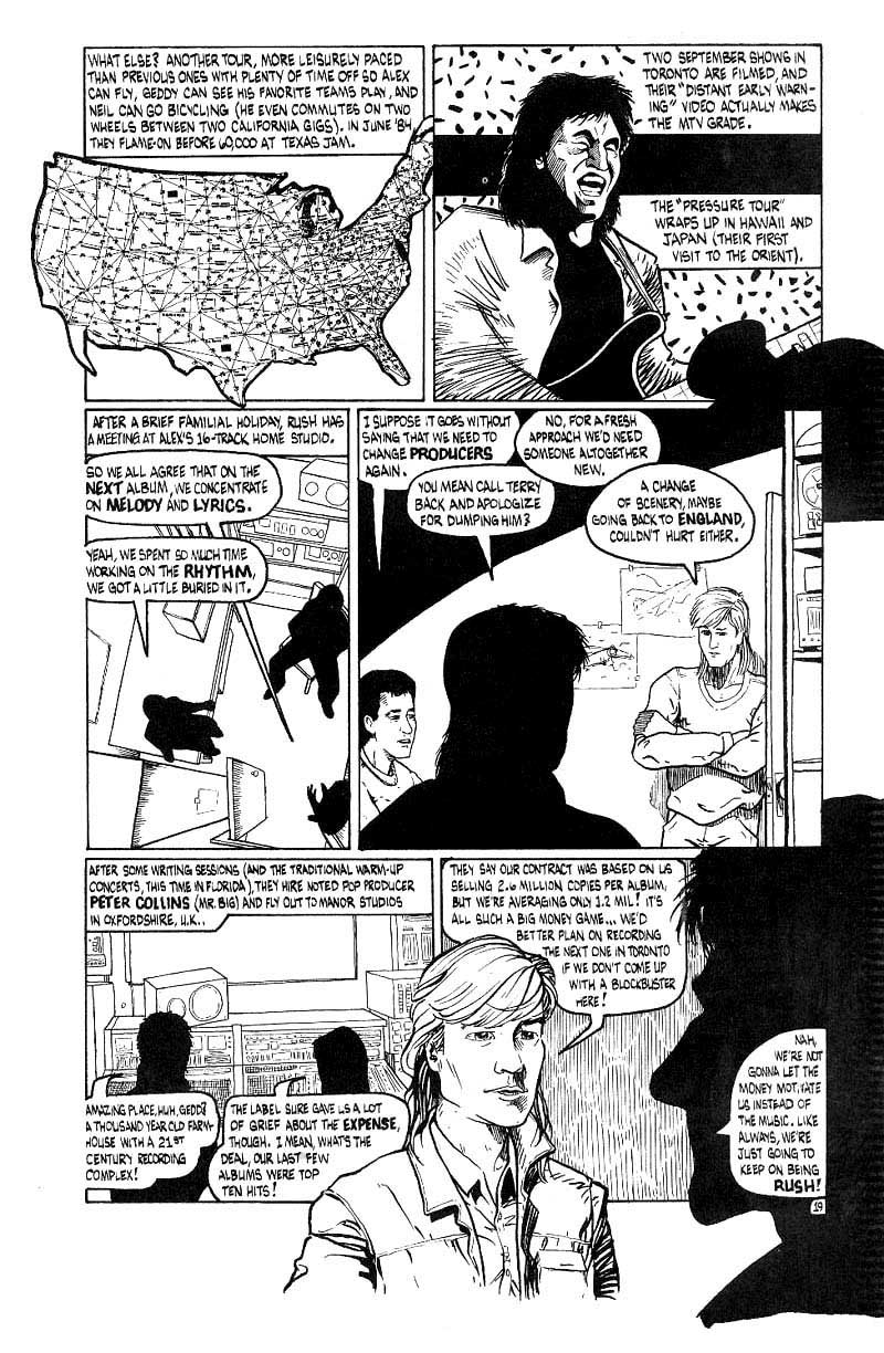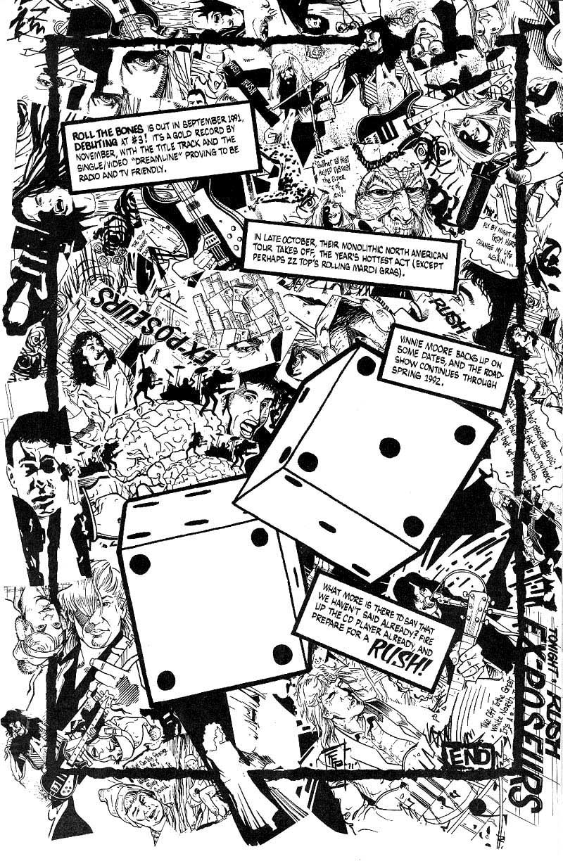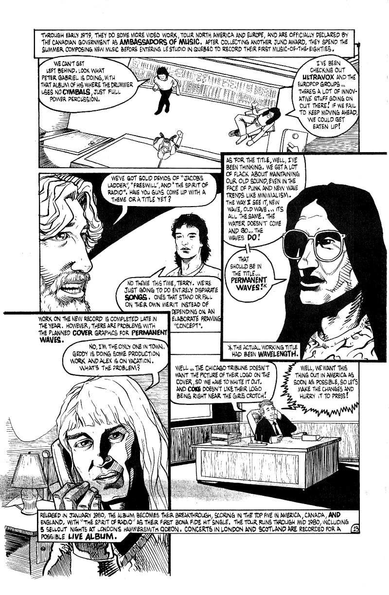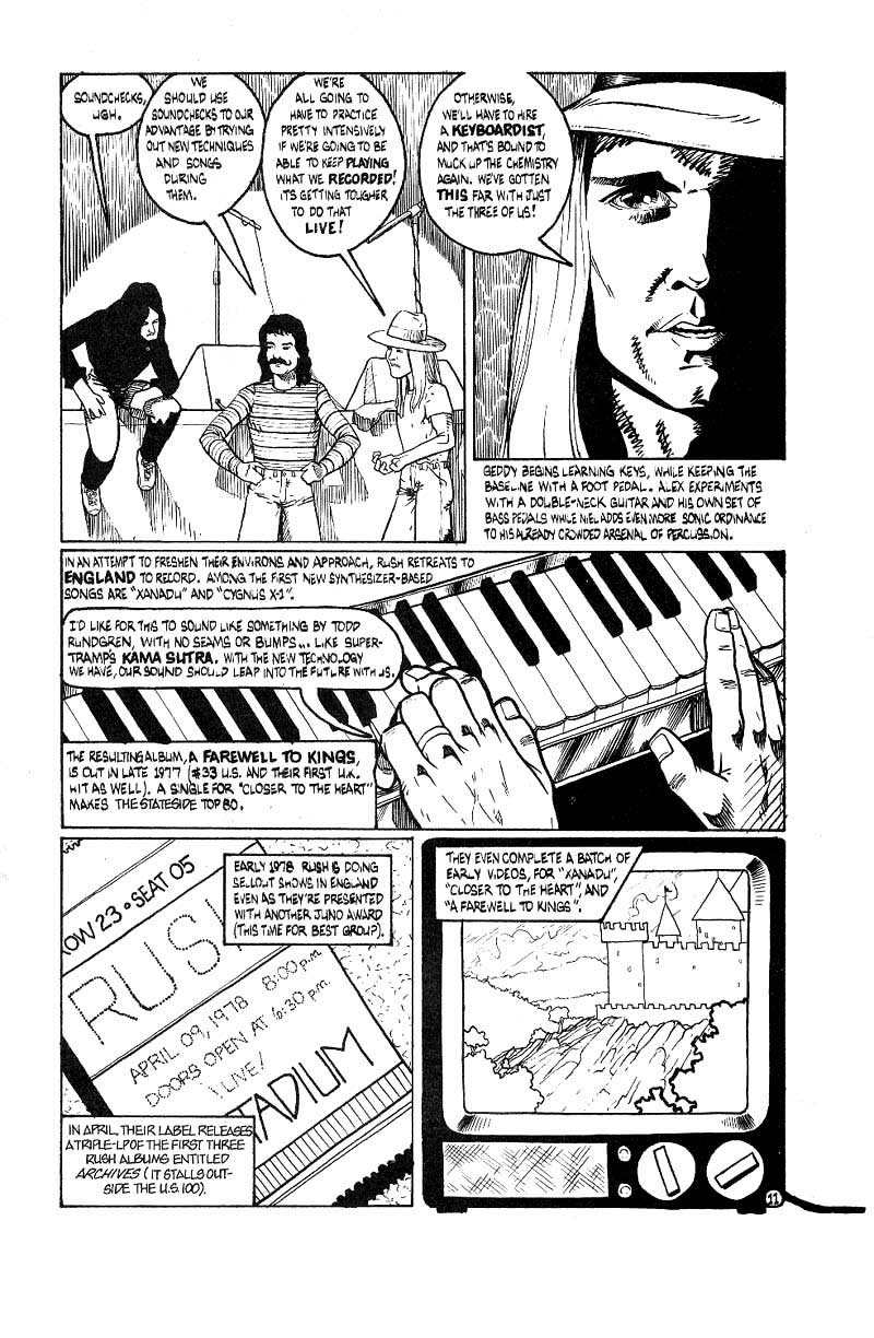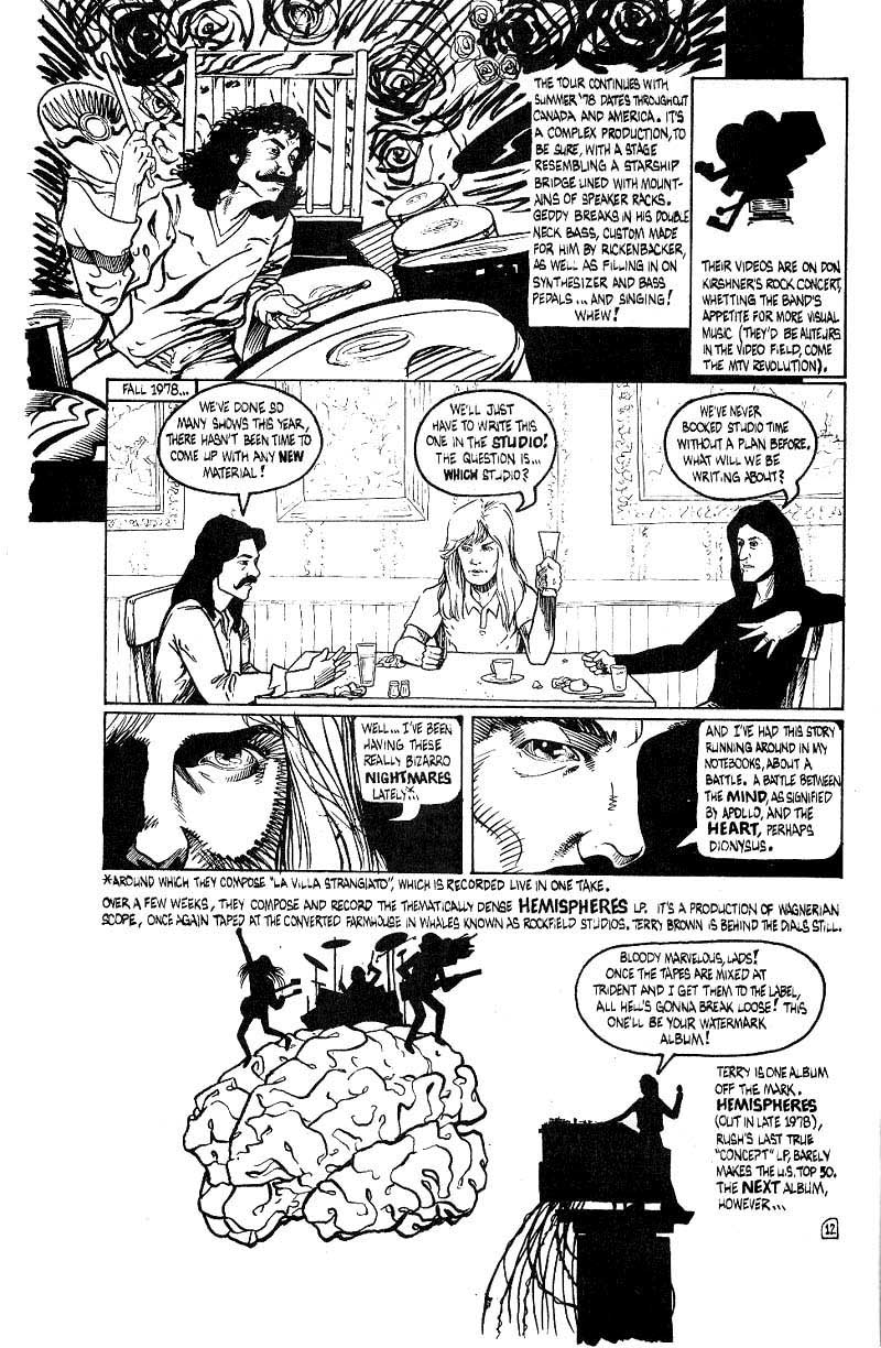 Rock & Roll Comics later included Rush as part of their "Sci-Fi Space Age Rockers" anthology, issue #65, with one page concerning the making of 2112 taken from the below Rush comic.]