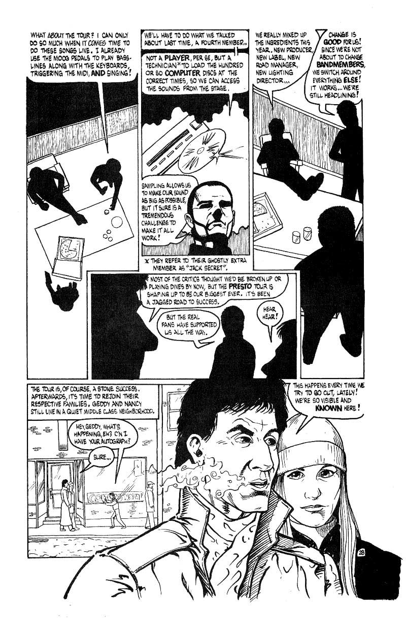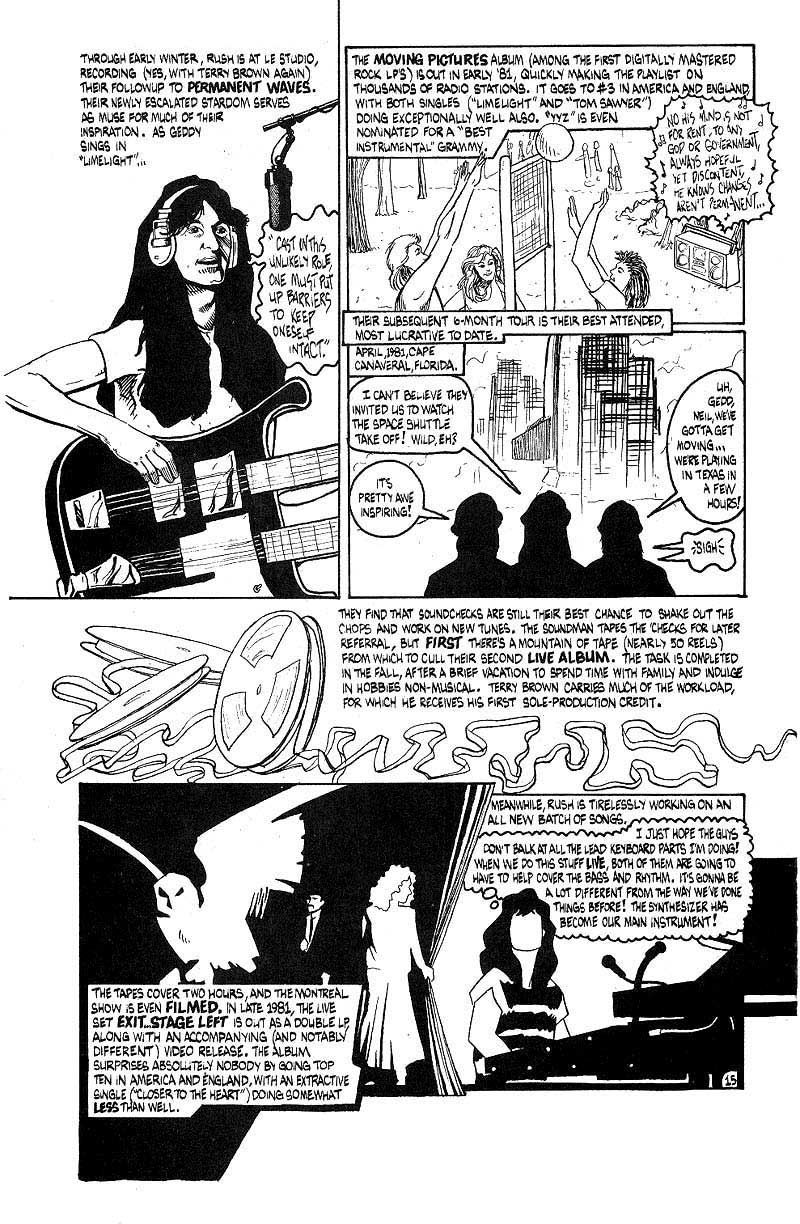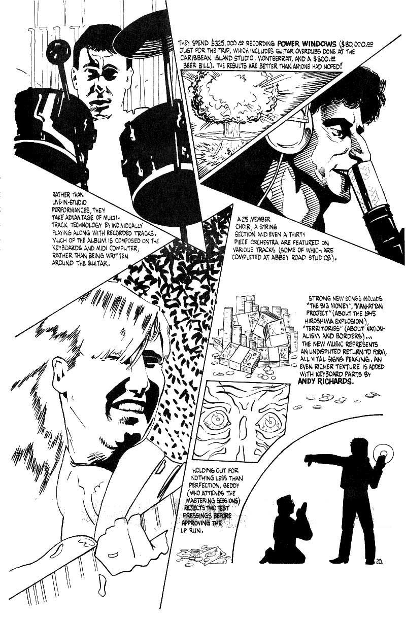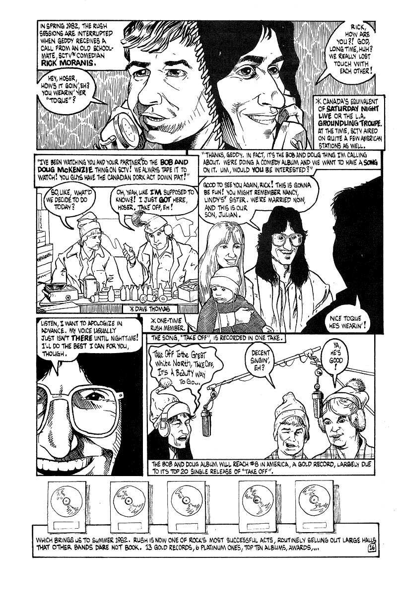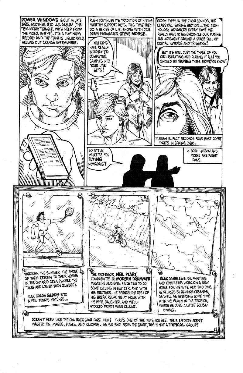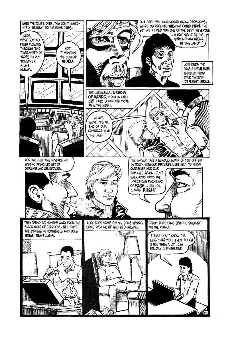 Rock & Roll Comics later included Rush as part of their "Sci-Fi Space Age Rockers" anthology, issue #65, with one page concerning the making of 2112 taken from the below Rush comic.]