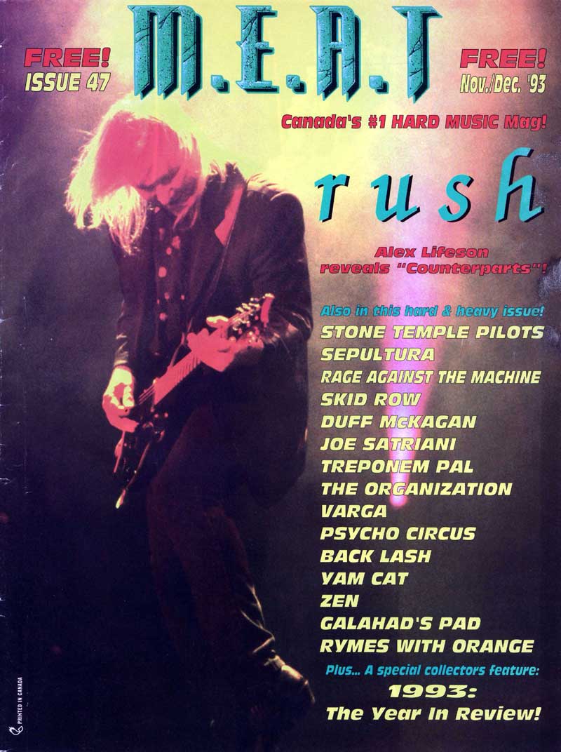 "It's hard to say at this point I know we've booked a couple of legs up until the middle of January, so there's a couple of months done. Long term plans, I'm not sure (a Canadian tour is possible for spring). We're going to record as many shows as we can on the next tour - there is pretty solid talk about doing a live album possibly for the next record, which frees us up to do some other things and possibly come back sooner, rather than waiting two years to come back on the road. We have talked about doing a 'Counterparts / 20th Anniversary' tour. Perhaps on that tour what we'd do is do something from every album, which would be fun. It would have to be an evening with Rush, as I don't think we'd have an opening act under those conditions. We'd really make it a complete presentation through video and the film stuff that we've always used, as well as the music itself to give a history of the band. That would be a nice way to approach it. Yeah, we could even come out in kimonos - not! (laughs). We've basically discussed concept, and I would think that it would probably be late fall of next year or possibly January or February of 1995. The idea would be to tour on this album, take a bit of a break, mix the live album, and come back out and continue for however long we decide to go."