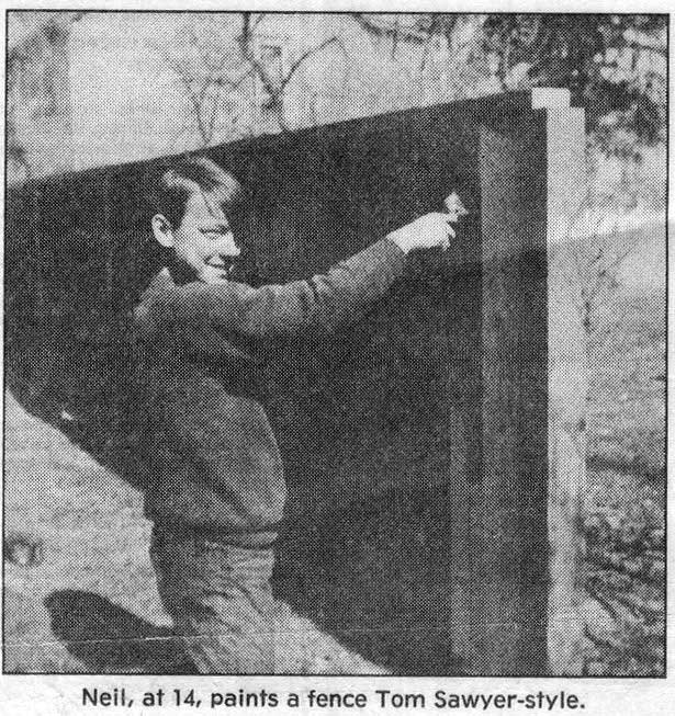 Caption: "Neil, at 14, paints a fence Tom Sawyer-style."