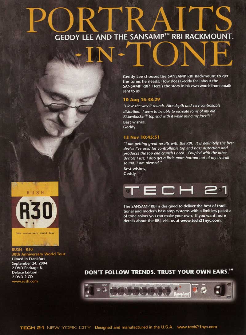 Geddy Lee's high-end twang and low-end bite on bass - not to mention his characteristic vocal shriek - have been key elements in Rush's progressive rock mix since the trio's 1974 debut. Geddy's serious chops continue to inspire legions of bass players.