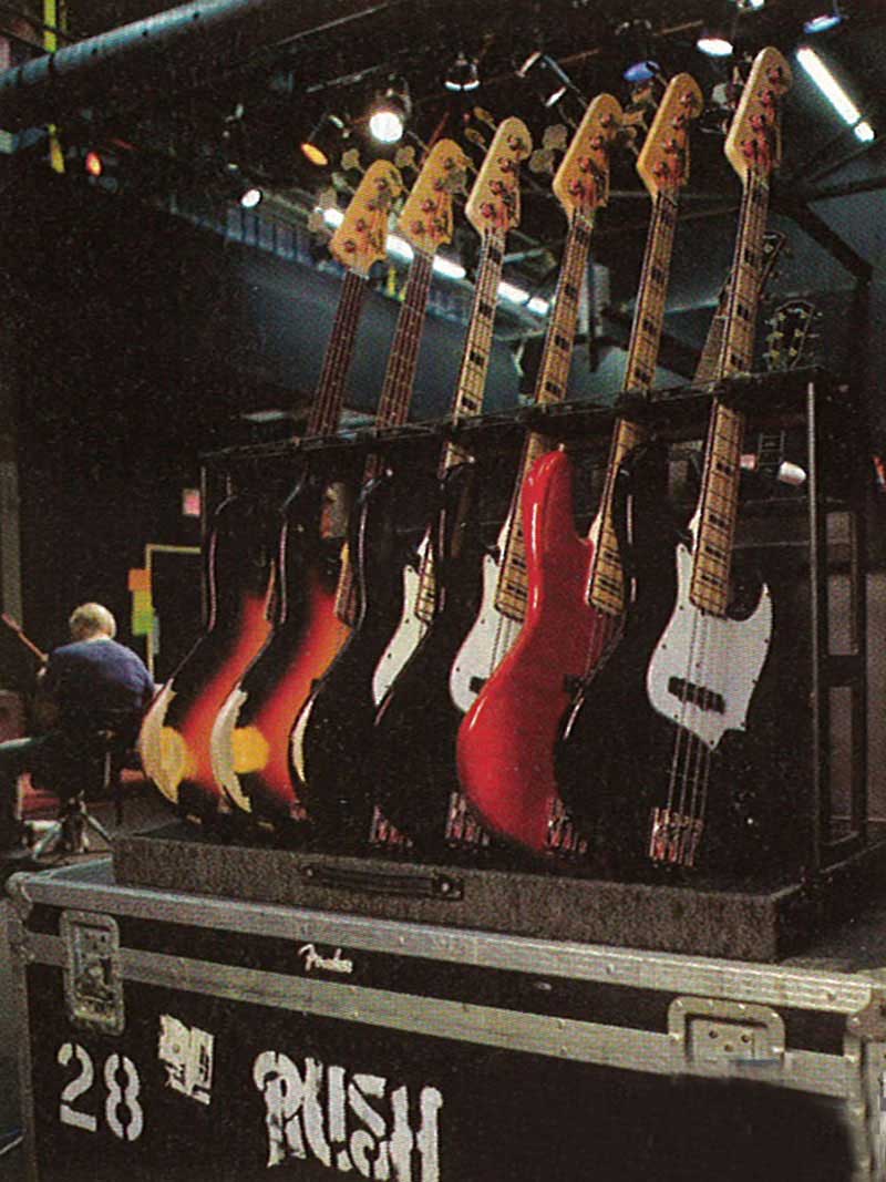 Despite his obvious rehearsal fatigue, Geddy finishes his tea and rises to take on another of his band's rehearsal exercises. Brandishing his spruced-up '72 Jazz Bass-plus a pair of new Fender Jaco Pastorius Tribute Jazz Basses-Geddy takes his position at stage left and prepares to bash through a block of new tunes. Geddy's determined expression and deliberate moves speak volumes: The campaign's about to begin.