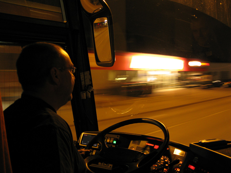 Mark driving into the night after a show |
