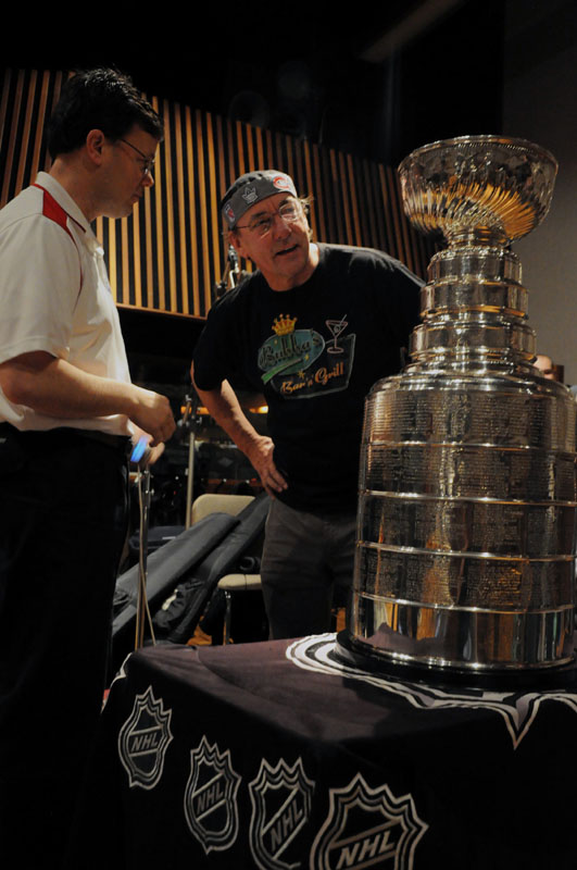It happened that a representative from the Hockey Hall of Fame was in town to display the Cup at a Los Angeles Kings game the previous night, and he was able to bring it by the studio for a few hours.