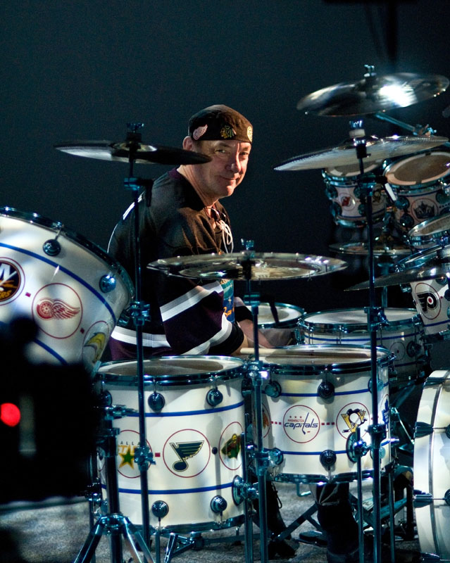 For those, I simply went across the road from Drum Channel to the offices of Drum Workshop, builders of the world's finest drums. (Handy, that.) The last two Rush tours, R30 and Snakes and Arrows, featured lavishly customized drumsets, while for the Buddy Rich tribute DW built me a beautiful set in classic white marine pearl with gold hardware.