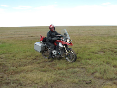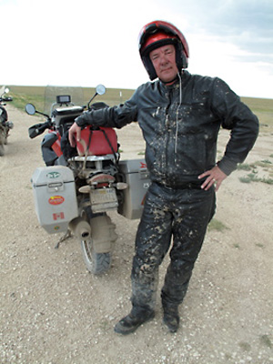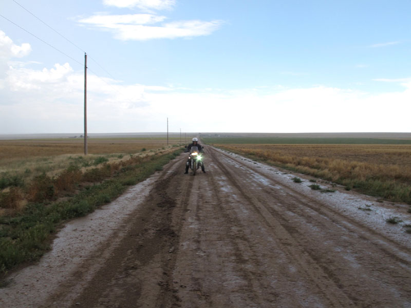 Anyway, it seemed miraculous to me, but I stayed upright until I could coast to a trembling stop on that grassy plain. After a long breath, I carefully angled my way back to the muddy road - but, almost immediately, my motorcycle was skidding sideways, pirouetting under me, and I jumped clear as it went down on its side. The squall had passed away to the north by then, but we hardly noticed.