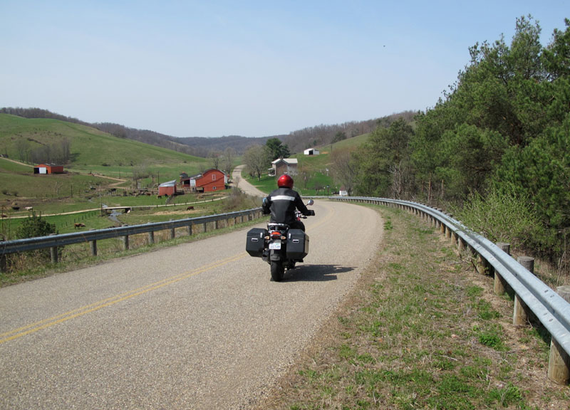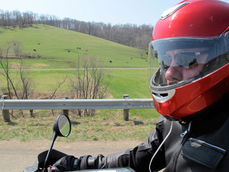 But first, here's a lovely little valley in Southern Ohio, just over the river from West Virginia. I saw a bluebird on the wing that morning - always a happy sight. We were returning from a two-day ride from Cleveland southeast through rural Ohio and West Virginia (just incidentally, I am sure that state has more one-lane paved roads - the rarest in the land - than any other) to overnight in Charleston, then back up to Cleveland for the show. I really ought to be able to sell that route to other riders, it was so good - a million-dollar ride that would surely be worth, oh, ten dollars, for another rider to profit from my years of experience, knowledge, and roadcraft in designing that route ...
