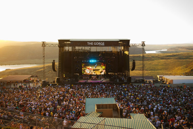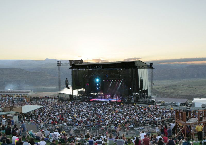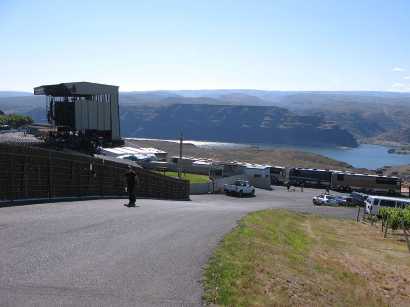 Still navigating by my hand-drawn map, and occasionally asking locals for directions, we found our way to a nice piece of gravel road, in the open sagelands now, then a final stretch of two-lane blacktop, and a few miles of Interstate 90. Our destination was an outdoor amphitheater on the banks of the Columbia called The Gorge - for the final show of the Time Machine tour.