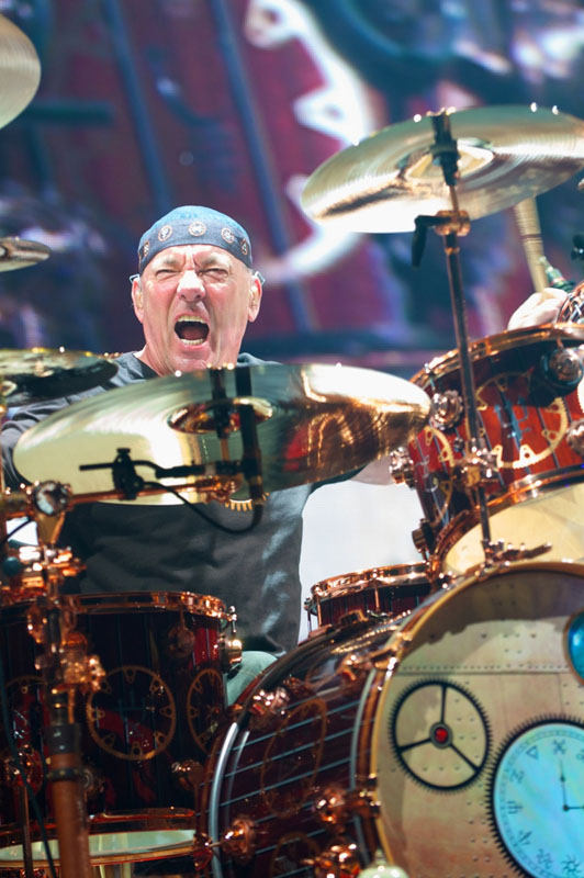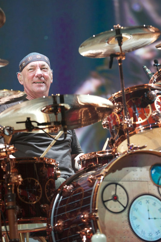 But it is true that when I am on a concert tour, if I'm not happy on the drums, then I'm not happy anywhere. That is a deep observation. And it also helps to illustrate why a guy like Lorne (Gump) Wheaton is so important to me. Every day, without fail or flaw, Gump sets up, tunes, and maintains those drums just perfectly. He is able to feel how each part of the complicated drumset should relate to the player, so my workspace is always comfortable. Nothing naggingly a little out of whack.