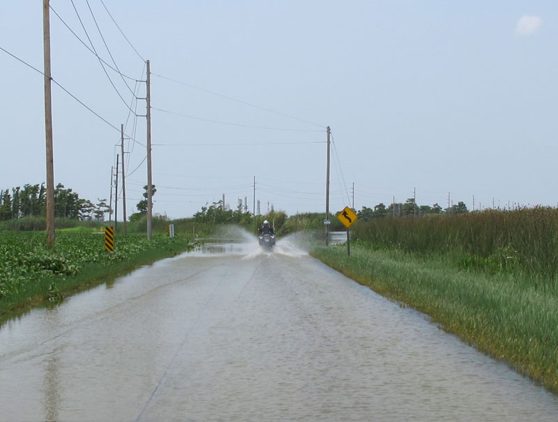 Farther, actually, because long stretches toward the bottom of that road were underwater, as shown above, and below. Anywhere else in the country, such roadways would have been classed as "flooded," and closed - but here, it just seemed to be accepted as normal.
