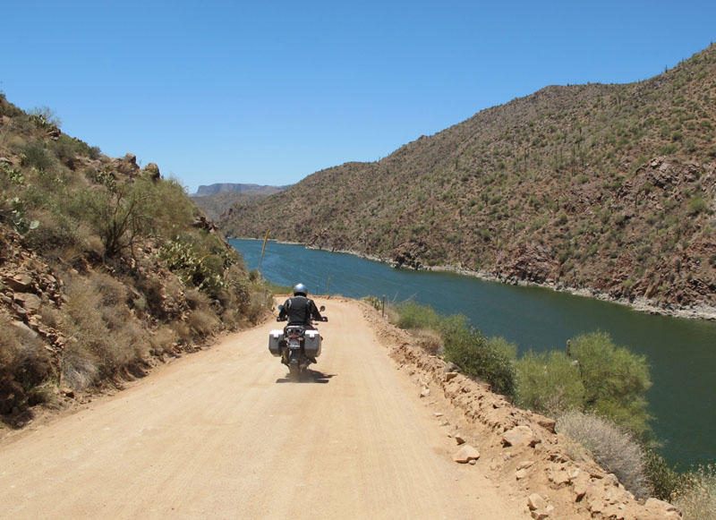 That day we got a double dose of off-pavement riding, as we worked our way southeast to the Apache Trail. We had ridden that road a few years before with this site's Master of All Things Creative, Greg Russell, and it might stand as a paragon for our kind of motorcycling. A little over twenty miles of gravel, decently graded and not too soft, followed by the same distance of twisty pavement, low speed and highly technical, following the Salt River down toward Phoenix.