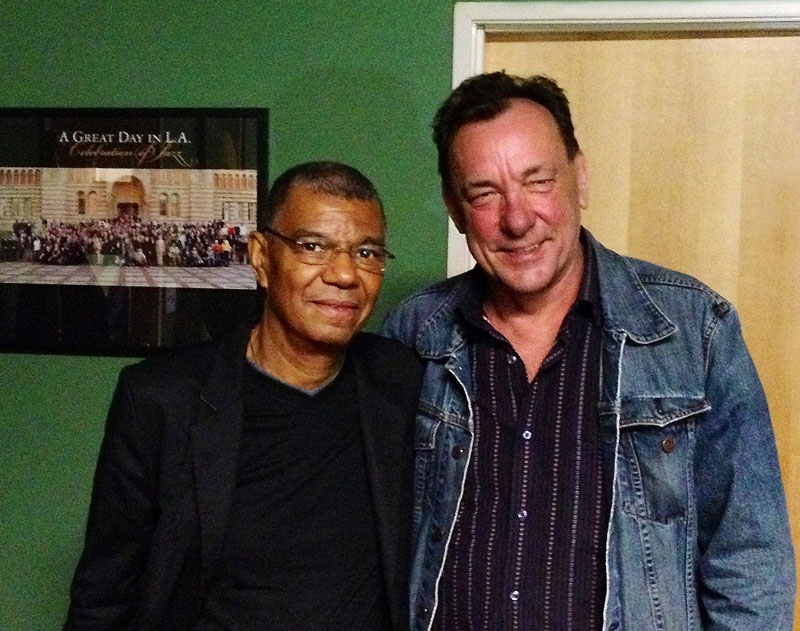 (A note about the photo of Jack and me: in the background is a poster of "A Great Day in L.A.: A Celebration of Jazz," which features my late teacher Freddie Gruber in the front row. Freddie was very proud to have been part of that, as it replicates a famous photo from 1958 called "A Great Day in Harlem," which Freddie always had in his house. Also, this was the same "green room" in which the photo of Freddie, Roy Haynes, Jim Keltner, Ian Wallace, Ndugu Chancler, and myself was taken - see "At the Gate of the Year.")