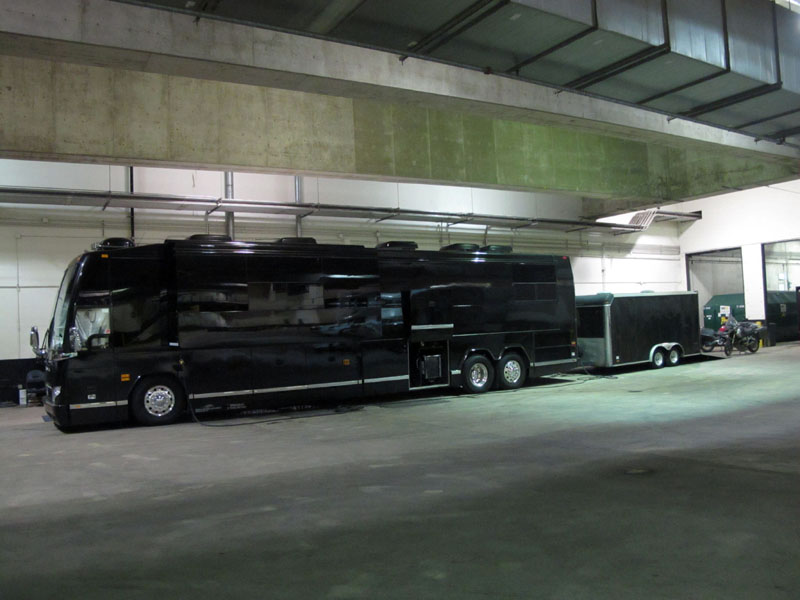 Classic Arena Backstage Scene - Bus, Trailer, Bikes, Dumpster |
