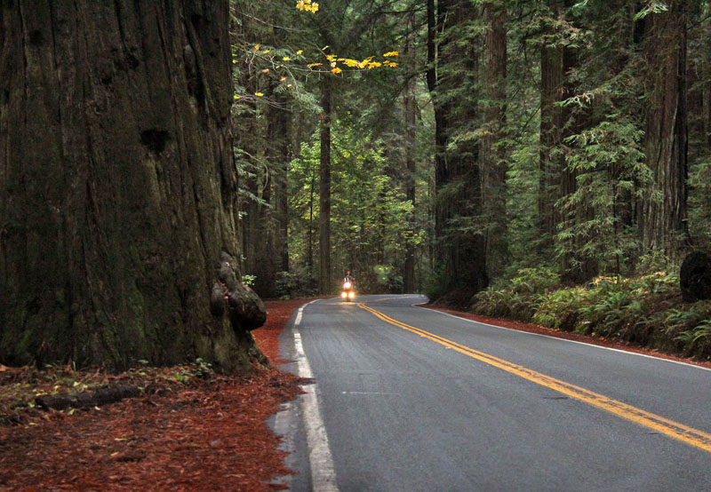 The air was often fragrant with the slightly skunky perfume of growing marijuana, as we were in a remote part of Humboldt County, famous for growing California's medicinal (and recreational) weed. Passing through one remnant grove of redwoods (so few of the big trees were left after the wholesale logging of the 19th and early 20th centuries that each grove has a name), we were suddenly in a dark twilight, our headlights a pale spray on the pavement.