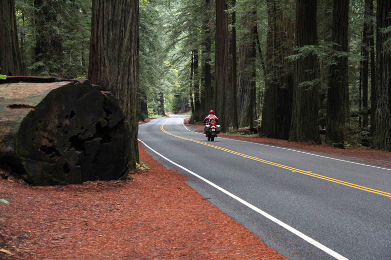 Next morning I led Michael on a backtrack north through part of the Avenue of the Giants, so he could see the majestic redwoods for himself. He thought he had seen them before, on a ride in the Sierras, but I informed him that those had been sequoias - a related species that can also grow to be thousands of years old. The sequoias are actually larger in girth, but the coastal redwoods are taller (the world's tallest tree is a redwood, at almost 380 feet).