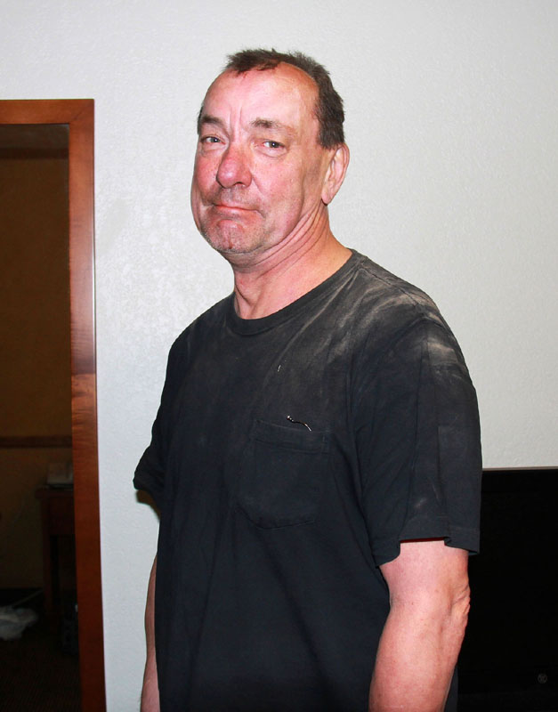 A tall, lean man came in, dressed in neat denim jeans and jacket, and a collared work shirt. He sat at the table beside us, saying "Morning, Gloria," and after a bit of banter with her, he leaned over to us. He looked to be in his fifties, his smooth-shaven face refined-looking, only mildly weathered by an outdoor life.
