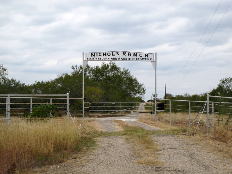 Their conversation was sprinkled with the relative merits of petroleum, its color, pressure in pounds-per-square-inch, and the percentage of water they were pumping. Johnny Nichols shook our hands again as we left, and just south of Tilden we saw the sign arching above a sideroad, "Nichols Ranch, Est. 1879 by John and Maggie Fitzpatrick."