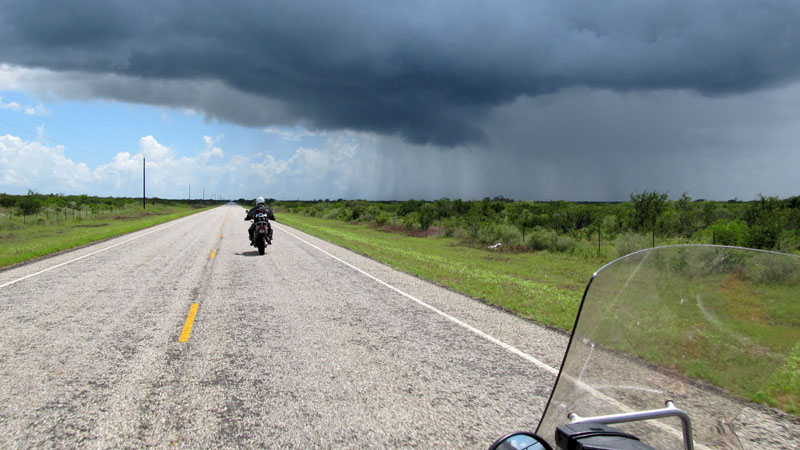 Texas truly is a country unto itself, beyond all the clichés, and its people are equally varied and unique. For example, it still remains true that rural Texans are the most courteous drivers in the country, perhaps in the world. Riding the two-lanes (which Brian was also delighted to see posted at 70 mph), cars, pickups, and larger trucks will pull right onto the shoulder as you overtake them. Sometimes you're not even thinking about passing them yet, but are willing to cruise behind them for a bit, but when they pull over like that, you feel you have to go by - always with a big wave.