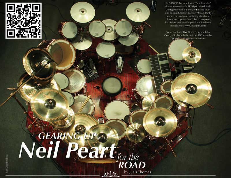 Yes. Obviously, you have to stock up on things like sticks. And my man, Garrison (at DW), is so helpful with us that even if I gap on something and have to call up for a last-second request, he's so all over it! I feel privileged to be able to deal with people like that. At the same time, I try to make sure my memory still works. I'll look at how many dates, because that's how you base what you need for backup stuff. Even though Neil's not hard on the drum set. As hard as he plays, he doesn't break a lot of stuff. So that's saying a lot for the manufacturers, as well. Since he worked with Freddy Gruber with drum lessons, it's amazing how much differently he approaches the drumset and his playing ability. The heads last a hell of a lot longer with him hitting them as hard as they possibly can be hit versus somebody else, or even versus himself before he had these Freddy Gruber instructions. It really does save drumheads and I don't change them half as much as I used to.