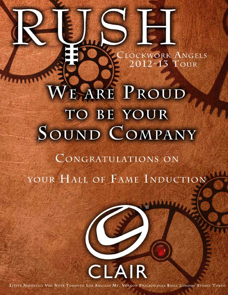 With this rich history behind the company, Clair is proud to be supporting Rush on their current Clockwork Angels world tour. "We've been involved with Rush for around six years now, and we are especially happy for them for their induction into the Rock and Roll Hall of Fame this year," says Scooter Hernsbeck of Clair Nashville.