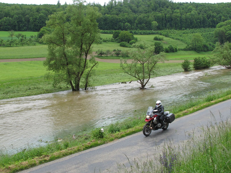 In the spring of 2013, the international media were reporting about the severe floods in Southern Germany, and friend Craiggie wrote to Brutus and me from South Pasadena, California, to warn us about the situation. We were fortunate that our routes were not affected, but riding into Dresden, we witnessed another kind of human unification against a common enemy-great numbers of citizens joining together not to fight against another group of people, but against Nature and "global weirding."
