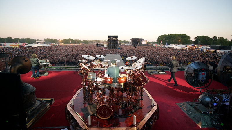 Not having mentioned any of the actual shows yet, the one in Sweden provides an exceptional example. The arena concerts in the U.K, Amsterdam, and Germany had gone very well, the audiences enthusiastic, and we thought we were playing okay. The string section continued to be an uplifting presence, musically and socially. However, this was something far outside our usual performance routine-headlining one night of a huge three-day festival called Sweden Rocks. Bands were playing all day on three or four different stages, more-or-less continuously, so there would be no sound check. Our show would start a couple of hours later than usual, and instead of our two sets with intermission, we would play one long set, about two hours-and we would play to 35,000 people. That was a little overwhelming to contemplate, but I didn't really have a sense of that crowd from the stage-with all the barricades and photo pits, even the closest people were farther away than usual. I really like to see people's faces-to see them smiling, singing along, getting excited-but still, it was an impressive sea of humanity.