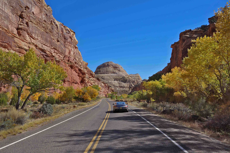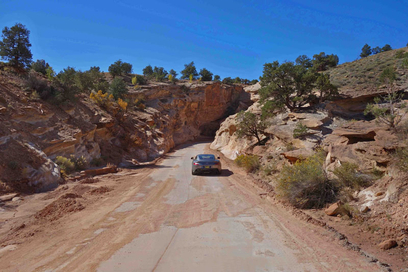 However, the car was as much a part of this story as my motorcycle is in others. So, despite the many gorgeous photos I captured of the car ("autoporn") against the stunning rock formations and autumn colors, I decided I would just show it from the back, as part of the scenery.