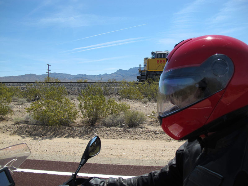 So the desert has space, it has nice air, it has good roads with stunning vistas of mountains and rugged cliffs, and it has little traffic. On this, our second crossing of the Mojave, I was feeling the desert in a way I never had before. Certainly the motorcycle had something to do with that.