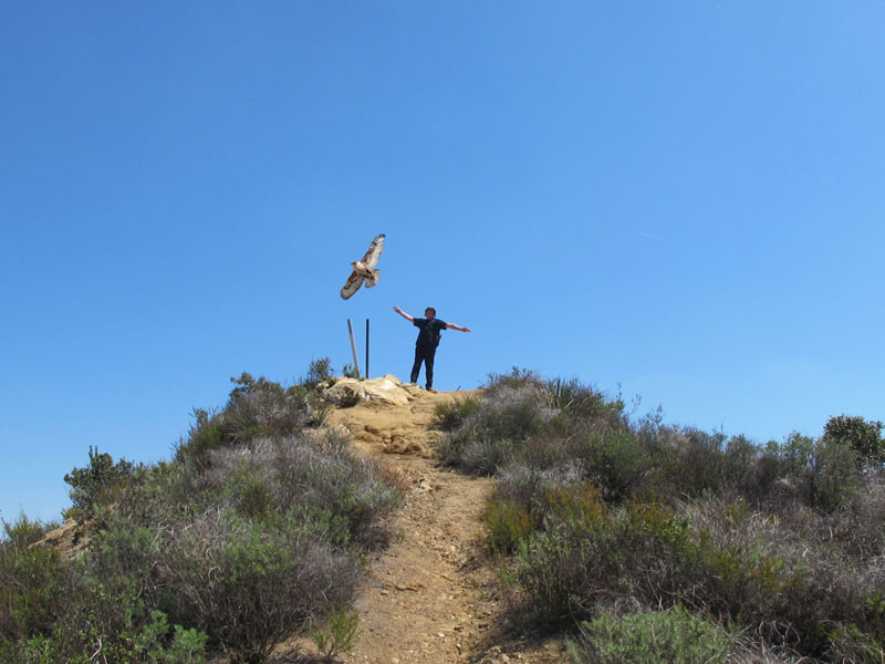 Coincidentally, in another vision quest, just the previous week friend Craiggie had fooled around with a photo from a hike I did in Topanga State Park with Greg Russell, and created this remarkable "hallucination." I liked that it seemed to reveal my spirit as a ferruginous hawk - not some showy, vainglorious eagle, you understand, but just one step below, the largest of hawks. That would be cool.